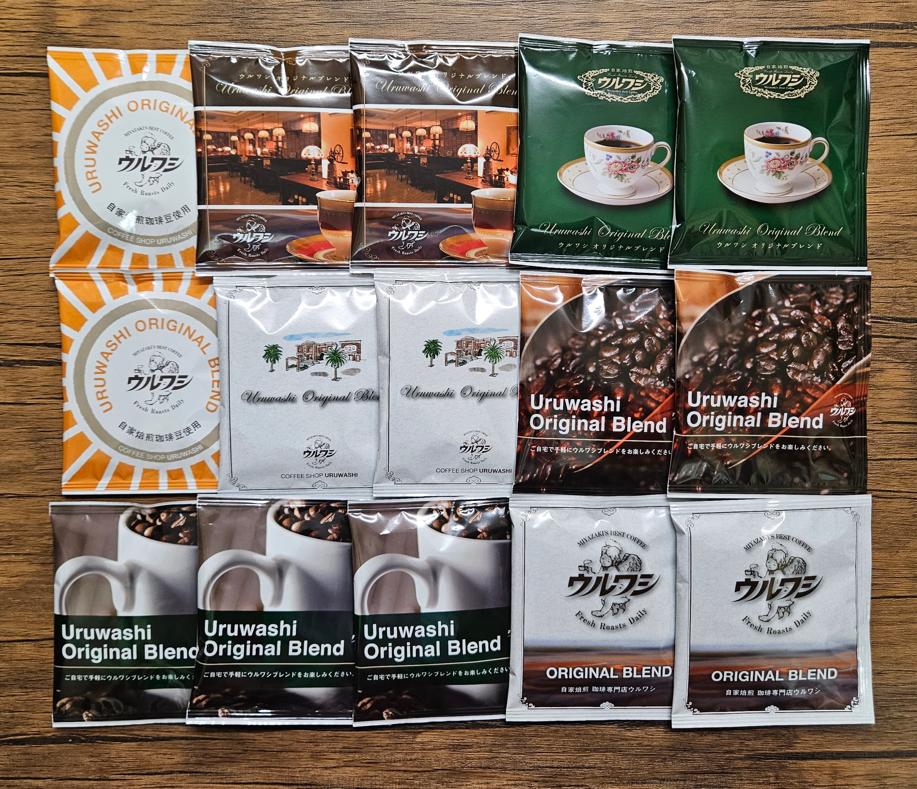 当店の看板メニュー「ウルワシブレンド」のドリップバッグです。